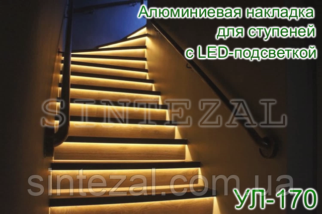 Алюмінієва накладка для ступенів зі світлодіодним підсвічуванням Sintezal УЛ-170 — сучасний оздоблювальний профіль, який поєднує в собі практичність використання та передові технології сучасного дизайну.