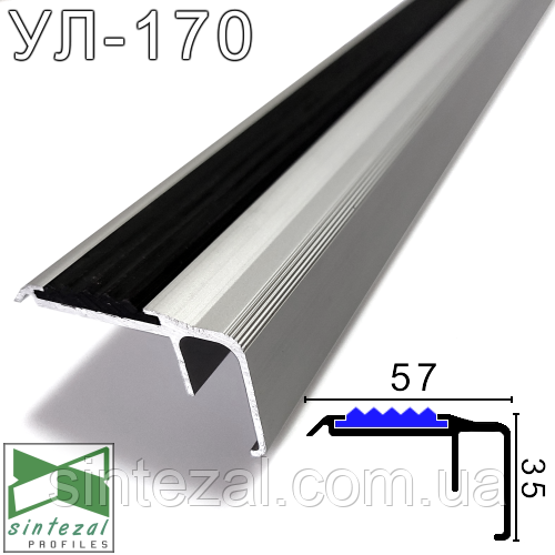 Міцність профілю. Масивний алюмінієвий профіль дуже міцний і може використовуватися навіть в місцях інтенсивної експлуатації (банки, кінотеатри, магазини). Накладка УЛ-170 не деформується з часом і стійка до стирання в місцях постійного контакту з взуттям.